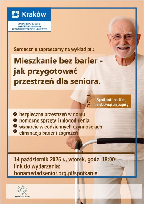 Wykład on-line "Mieszkanie bez barier - jak przygotować przestrzeń dla seniora”.