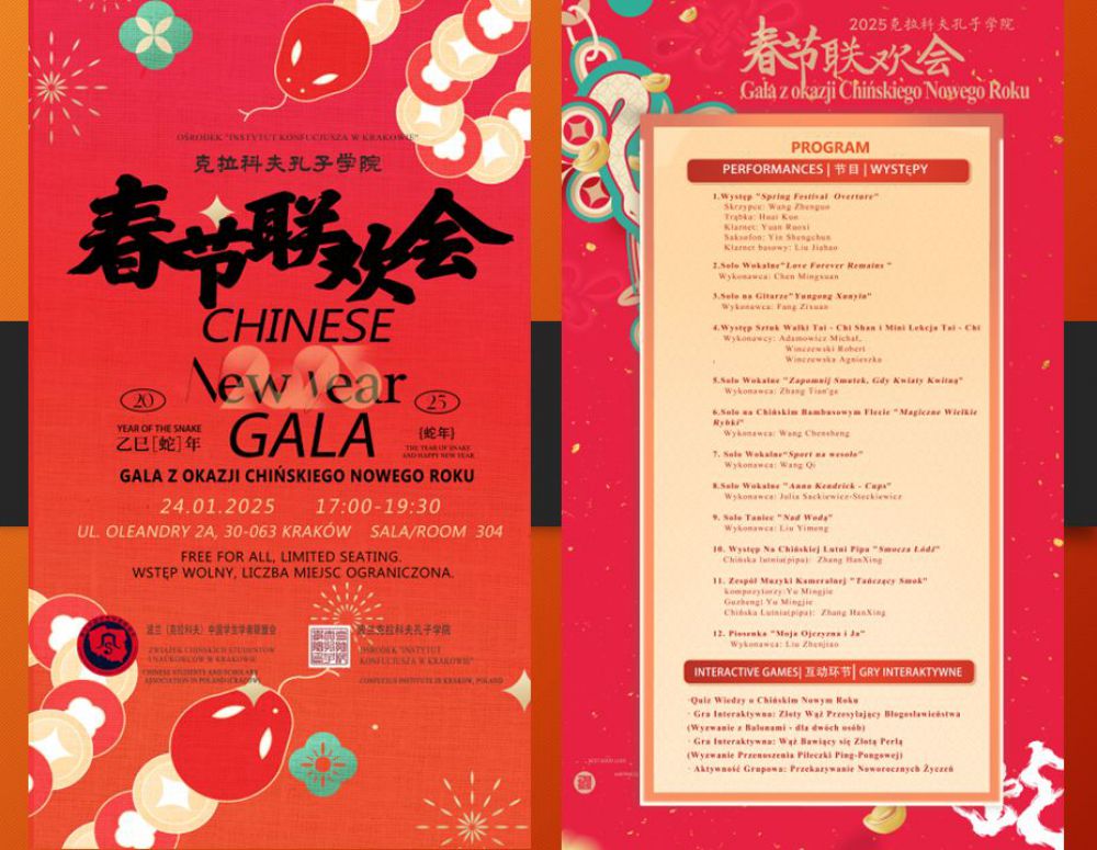 Ośrodek „Instytut Konfucjusza w Krakowie” serdecznie zaprasza w piątek 24 stycznia o godz. 17:00 na galę z okazji obchodów Chińskiego Nowego Roku Węża!