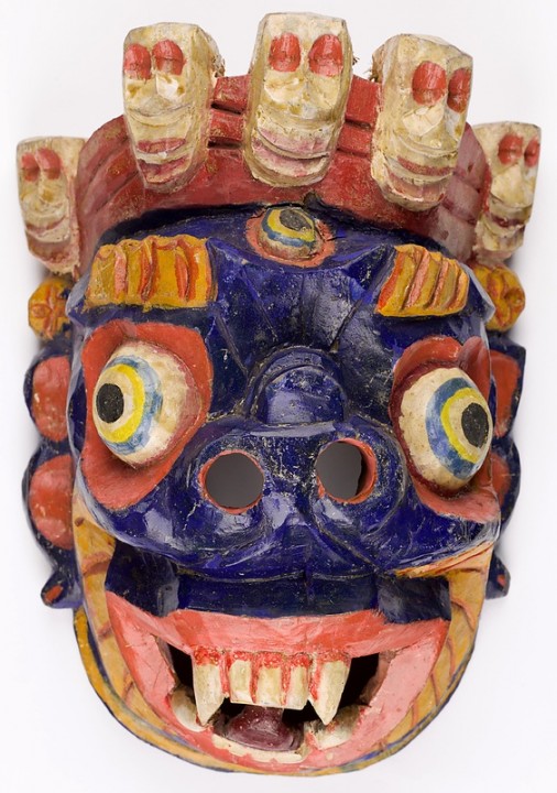 Demoniczna w swym wyglšdzie maska przedstawia w buddyzmie tybetańskim strażnika Dharmy, który swš mocš chroni religię i wiernych przed wypaczeniami i błędnš interpretacjš. Używana jest przez mnichów w rytualnym tańcu cam (czam, tsam), odbywa-jšcym się na dziedzińcach œwištyń podczas tybetańskiego Nowego Roku na przełomie stycznia i lutego. Ma za zadanie odpędzania złych mocy i cierpienia, a tym samym pomagania człowiekowi w przezwyciężeniu zła i dšżeniu do osišgnięcia wyzwolenia duszy. Straszny wyglšd maski jest wyrazem mocy strażnika do pokonywania demonów i tworów umysłu, które wydostały się spod kontroli i mogłyby działać destrukcyjnie na œwiadomoœć praktykujšcego tantrę; symbolizuje niechęć do œwiata materialnego. Trzecie mistyczne oko, znajdujšce się poœrodku czoła maski, to oko poznania, reprezentujšce aspekt energii oœwiecenia. Dostrzega wszystkie tajemnice wiary. Czaszki natomiast sš oznakš zwycięstwa nad pięcioma głównymi grzechami ludzkoœci, którymi sš: miłosne pożšdanie, gniew i niewiedza, egoizm, skšpstwo oraz zazdroœć. Uczestnictwo wiernego w odgrywanym rytualnym tańcu cam pomaga mu przezwyciężyć zło, będšce przeszkodš na drodze do wyzwolenia duszy.