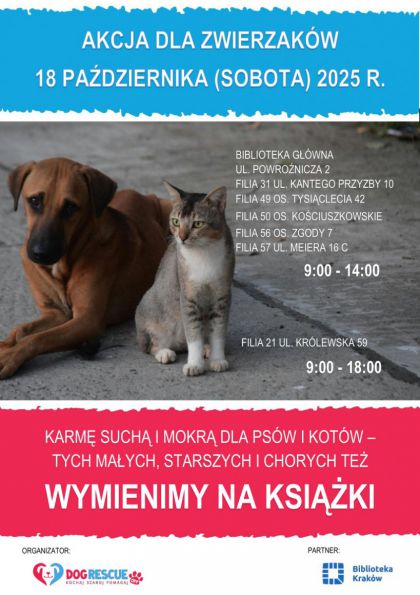 | Wielka akcja da zwierzaków w kilku filiach Biblioteki Kraków |