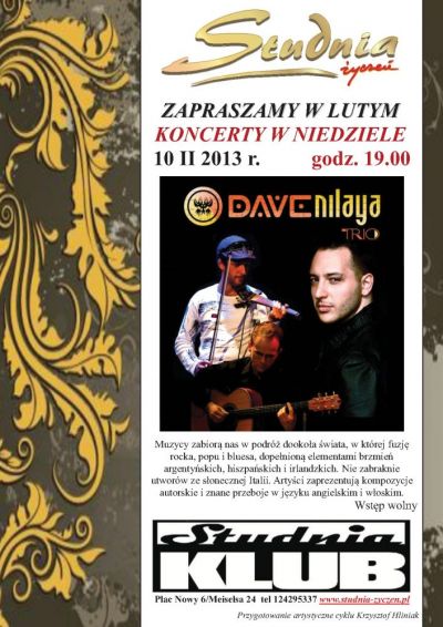 Klub Studnia, Plac Nowy 6, zaprasza na koncert wosko-polskiej formacji DAVE NILAYA TRIO, w skadzie: