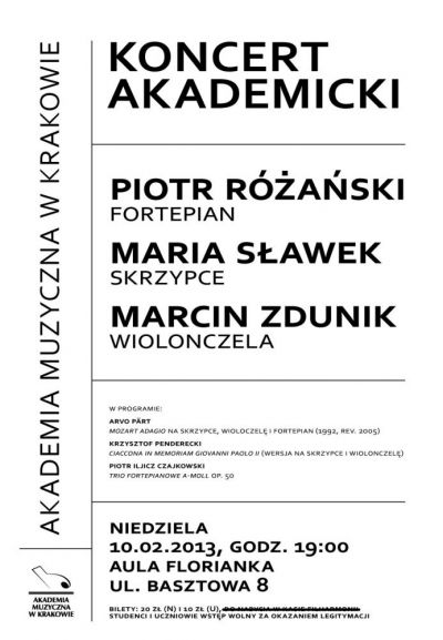 Ju 10 lutego w Auli Florianka modzi pedagodzy Akademii Muzycznej wraz z gociem specjalnym, wystpi na wyjtkowym Koncercie Akademickim.