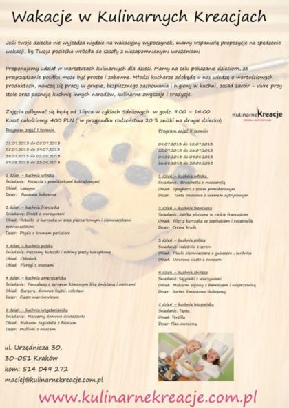 | WAKACJE DLA DZIECI W KULINARNYCH KREACJACH |