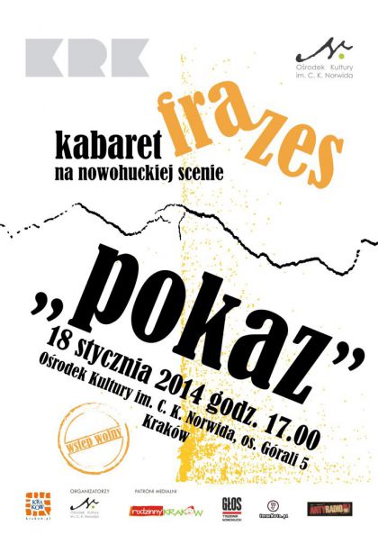 W sobot 18 stycznia o 17.00 w Orodku Kultury im. C. K. Norwida, os. Grali 5 odbdzie wystp krakowskiego kabaretu Frazes. Pokaz - tak brzmi tytu wystpu, jaki zaserwuj komicy nowohuckiej publicznoci.