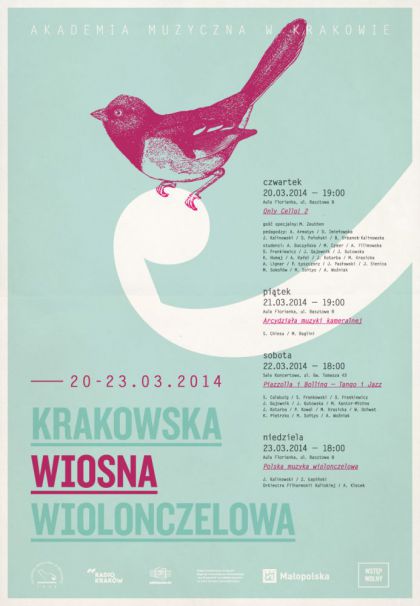 Pocztek wiosny Akademia Muzyczna przywita czterodniowym witem wiolonczeli. Cykl koncertw zatytuowany Krakowska Wiosna Wiolonczelowa realizowany bdzie w dniach 20-23 marca w Auli Florianka oraz w Sali Koncertowej Akademii Muzycznej w Krakowie.