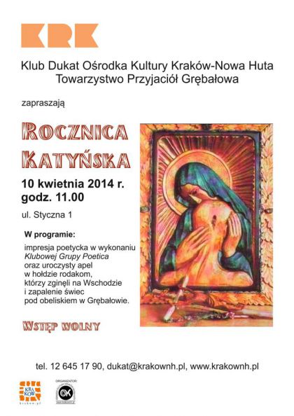 Klub Dukat Orodka Kultury Krakw-Nowa Huta (ul. Styczna 1) zaprasza 10 kwietnia o godz. 11.00 na uroczysty apel powicony pamici Ofiar Zbrodni Katyskiej z 1940 roku.