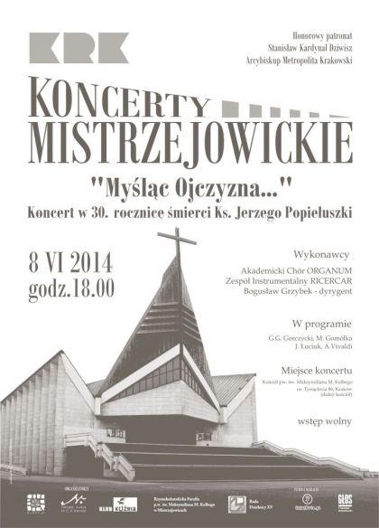 Klub Kunia Orodka Kultury im. C. K. Norwida serdecznie zaprasza do Kocioa pw. w. M. M. Kolbego w Mistrzejowicach na Koncert Mylc Ojczyzna