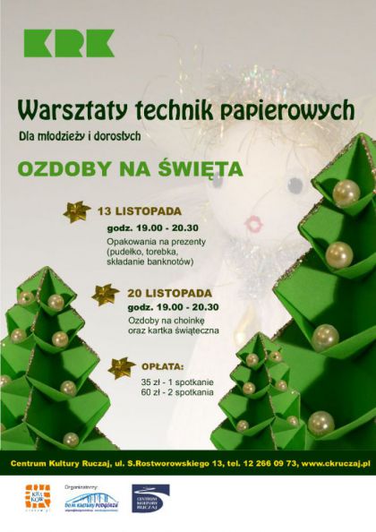 W programie najbliszej edycji warsztatw s przedmioty inspirowane witami Boego Narodzenia, wykonywane technikami origami i quilling.