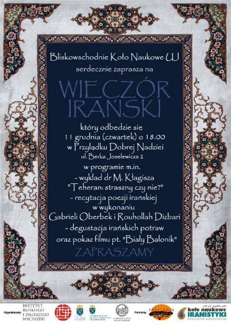 Bliskowschodnie Koo Naukowe UJ zaprasza Pastwa na Wieczr Iraski, ktry odbdzie si 11 grudnia o godzinie 18.00 w Przyldku Dobrej Nadziei.