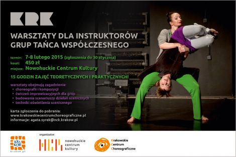 Krakowskie Centrum Choreograficzne serdecznie zaprasza na warsztaty dla instruktorw grup taca wspczesnego, ktre odbd si w Nowohuckim Centrum Kultury w dniach 7-8 lutego 2015!