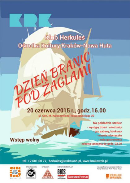 | Klub Herkules Orodka Kultury Krakw-Nowa Huta (ul. Gen. M. Karaszewicza-Tokarzewskiego 29) zaprasza 20 czerwca na Dzie Branic pod aglami, ktry rozpocznie si o godz. 16.00. Tegoroczne wito osiedla to prba odnalezienia morskiego klimatu w rodku ldu. Bd wic eglarskie piosenki i zabawy na pokadzie statku. Dla modszych uczestnikw sza atrakcji, a wrd nich mini wesoe miasteczko, loteria fantowa oraz rnorodne akcje plastyczne, a dl(...) ... więcej » |
