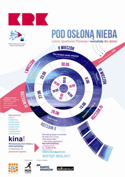 Bardzo serdecznie zapraszamy na cykl spotka filmowych "Pod oson nieba" Letnie Spotkania Filmowe​. Projekt skierowany jest do wszystkich mionikw kina, poczony jest z prelekcjami i dyskusjami po projekcjach filmowych.