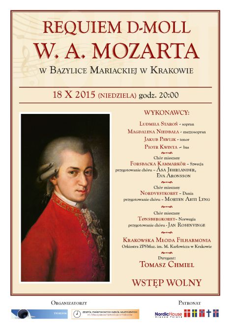 W niedziel, 18 padziernika 2015 o godz.20:00 odbdzie si w krakowskiej Bazylice Mariackiej koncert Requiem Wolfganga Amadeusza Mozarta, jednego z najwikszych arcydzie tego genialnego kompozytora.