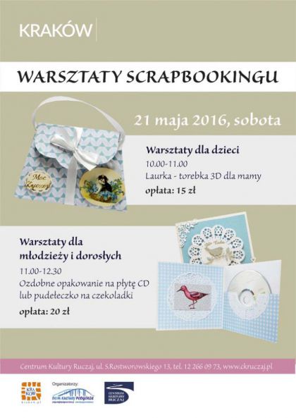Klub Jdru Orodka Kultury Krakw-Nowa Huta (os. Centrum A 6a) serdecznie zaprasza na kreatywne i inspirujce warsztaty dla dzieci i rodzicw, podczas ktrych stworzymy i niesamowite dziea sztuki i - bardzo praktyczne przedmioty. 21 maja o godz. 11:00 wsplnie bdziemy klei, malowa, zszywa, wycina (niekoniecznie w takiej kolejnoci) i odkrywa, e nasza wyobrania i talent nie maj granic.