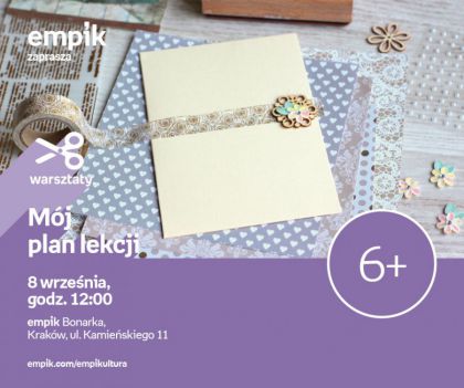 Zapraszamy do wasnorcznego wykonania i ozdobienia plakatu z planem lekcji. Do dyspozycji bdzimy mieli zociste ozdoby, kolorowe elementy do przyklejenia, papier czy wstki. Mamy nadziej, e samodzielnie wykonany, powieszony na honorowym miejscu w pokoju, jeszcze bardziej zachci do czstego spogldania na niego i uczestnictwa w lekcjach z jeszcze wikszym zapaem. Wiek: 6+.