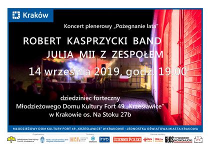 14 wrzenia br., na dziedzicu fortecznym MDK Fort 49 Krzesawice, os. Na Stoku 27b, Krakw wystpi znakomici artyci Robert Kasprzycki Band i Julia Mii z zespoem.