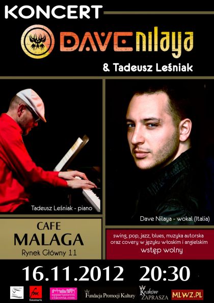 Cafe Malaga Rynek Gwny 11 zaprasza na koncert wosko polskiego duetu muzycznego Dave Nilaya & Tadeusz Leniak.