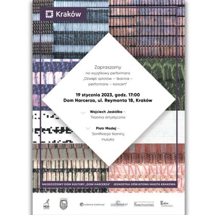 Dźwięki splotów to interdyscyplinarny, unikatowy projekt łączący dwa światy – świat tkanin wykonanych w pracowni Wojciecha Jaskółki i świat muzyki Piotra Madeja powstałej na podstawie nowatorskiej metody analizy splotów tychże tkanin. Miejsce, w którym oba te światy staną do twórczego dialogu, jest jedynym tego rodzaju przedsięwzięciem w życiu artystycznym Krakowa. Nie może Was tam zabraknąć!