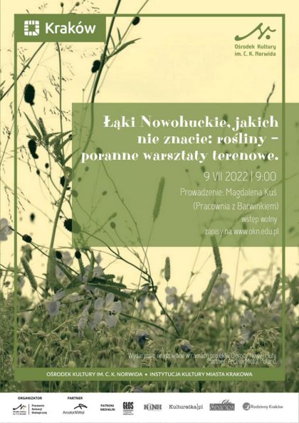 Zapraszamy na pierwszy – z dwóch zaplanowanych – warsztatów po Łąkach Nowohuckich, który poświęcony będzie w głównej mierze roślinom i dziedzictwu przyrodniczemu tego miejsca. Wspólnie będziemy dokonywać odkryć przyrodniczych, ale i przyglądniemy się Łąkom w nowych, zadziwiających perspektywach. Będziemy wykorzystywali wiele zmysłów do poznania tego skrawka dzikiej przyrody w mieście, doświadczymy obecności Łąk na różnych płaszczyznach. Przy okazji poszukamy roślinnych klejnotów, poobserwujemy ranne życie Łąk. Nieśpiesznie będziemy spacerować zanurzeni w morzu traw i roślin kwietnych.