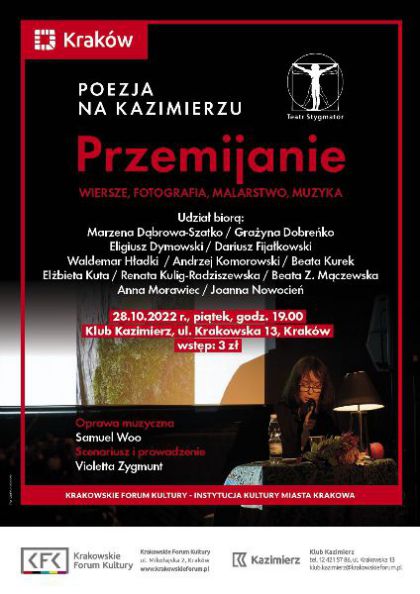POEZJA NA KAZIMIERZU - Teatr Stygmator zaprasza to cykliczne programy artystyczne zainspirowane poezją współczesną. Pomysłodawczynią i prowadzącą jest Violetta Zygmunt.