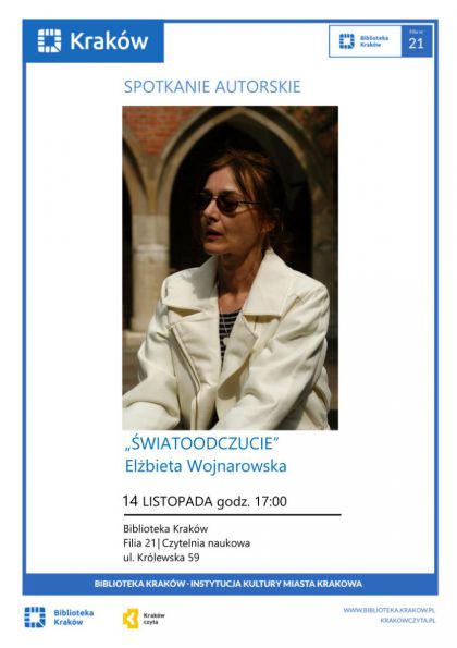 Wieczór autorski Elżbiety Wojnarowskiej pod hasłem „Światoodczucie”. Autorka zaprezentuje swoją najnowszą powieść „To nie jest raj dla dzikich zwierząt”.