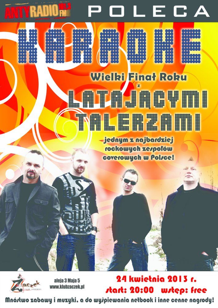 W niemalże każdš rodę od padziernika do kwietnia studenci mieli możliwoć wzięcia udziału w studenckim karaoke, które odbywało się w Żaczku. Teraz przyszedł czas na wielkie podsumowanie i FINAŁ nie byle jaki z udziałem jednego z najbardziej rockowych zespołów coverowych w Polsce, czyli z LATAJĽCYMI TALERZAMI!
