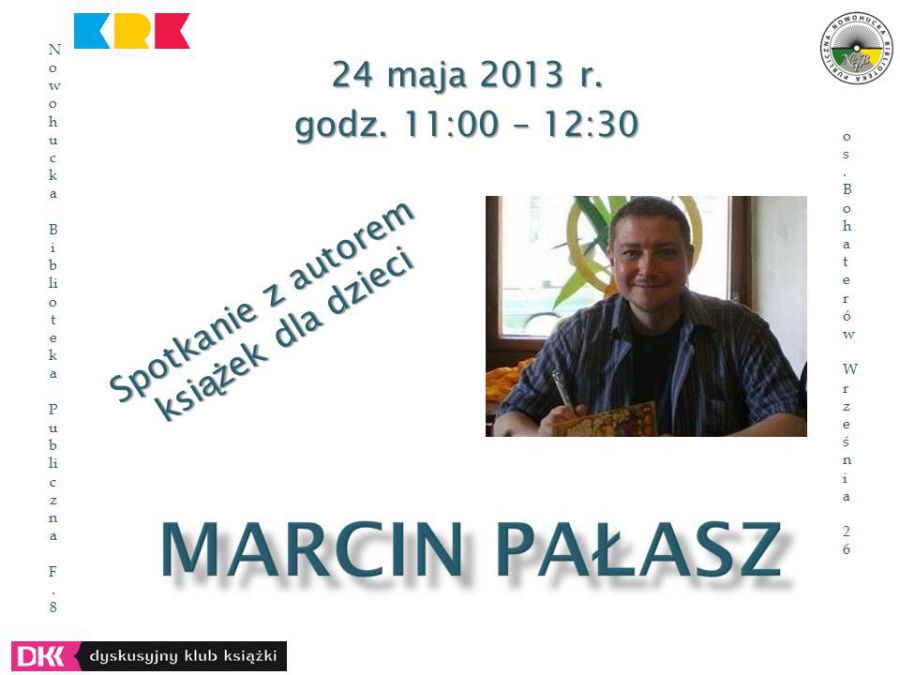 Biblioteka serdecznie zaprasza dzieci i młodzież na spotkanie z Pawłem Pałaszem, wrocławskim pisarzem, autorem słuchowisk, laureatem wyróżnionym w Ogólnopolskim Konkursie im. K. Makuszyńskiego.