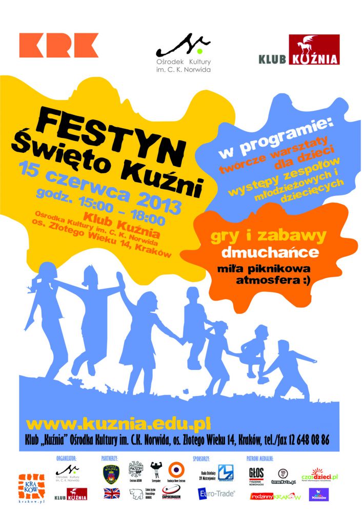 Serdecznie zapraszamy na rodzinny festyn plenerowy przy Klubie KuŸnia Oœrodka Kultury im. C. K. Norwida (os. Złotego Wieku 14).