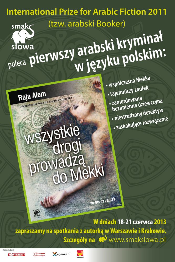 Wydawnictwo Smak Słowa serdecznie zaprasza na spotkania z laureatkš arabskiego Bookera Rajš Alem, autorkš ksišżki Wszystkie drogi prowadzš do Mekki, która odwiedzi Polskę w dniach 17-21 czerwca.