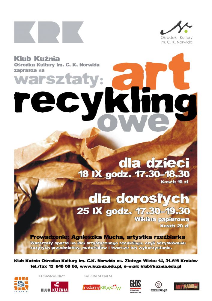 Zapraszamy dzieci od lat 7 na warsztaty oparte na idei artystycznego recyklingu, czyli odzyskiwaniu zużytych przedmiotów, materiałów i twórczym wykorzystaniu ich.