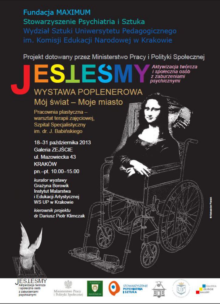 Partnerzy: Stowarzyszenie Psychiatria i Sztuka, Dom Pomocy Społecznej w Krakowie, Orodek Wsparcia przy Zgromadzeniu Sióstr Najw. Serca Jezusowego w Krakowie