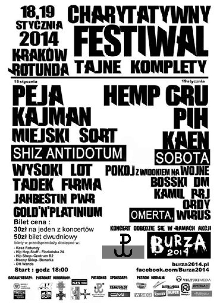 Nowatorskie połšczenie przekazu muzycznego i edukacyjnego. Najwięksi artyœci polskiej sceny hip-hopowej podczas dwudniowego festiwalu będš m.in. prezentować utwory ze swojego repertuaru nawišzujšce do historii kraju i tożsamoœci narodowej. Podczas koncertu prezentowana będzie specjalna oprawa edukacyjna. Wystšpiš m.in. Tadek, Peja, Kajman, Hemp Gru, PIH i wielu innych.
