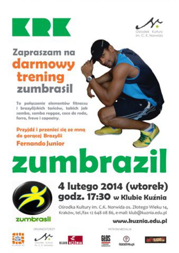„Zapraszam na darmowy trening zumbrasil.Wyjštkowy, niepowtarzalny, jedyny taki w Krakowie. PrzyjdŸ i przenieœ się ze mnš do goršcej Brazylii” - Fernando Junior