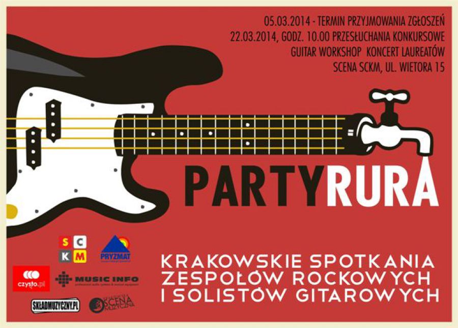 Staromiejskie Centrum Kultury Młodzieży zaprasza zespoły grajšce rock, jazz, blues, funky, reggae, folk do udziału w Krakowskich Spotkaniach Zespołów Rockowych i Solistów Gitarowych PARTY RURA, które odbędš się 22 marca 2014 na scenie SCKM ul. Wietora 15.