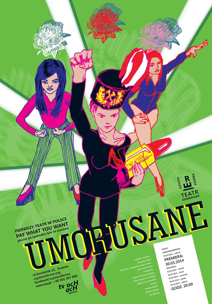 „Umorusane" zachęcajš Cię do podjęcia ryzyka i zajęcia miejsca w wagoniku rollercoaster'a. Lepiej zapij pasy, bo będzie to rozrywka najwyższej klasy, pełna ostrych zakrętów, niespodziewanych zwrotów, a nawet podniebnych lotów. Za sterami trzy kobiety, więc chyba nie masz się czego bać. Chyba że masz? Czeka Cię pełna humoru podróż w nieznane dotšd rejony kobiecych intymnoœci. Gdzie zawiezie Cię ta górska kolejka? Do kopalni kobiet. Ale spokojnie, kilofy w rękach będš mieć tylko "Umorusane". To one spróbujš dokopać się do istoty wzorców piękna i dobra, kompleksów, manipulacji, akceptacji i szczeroœci. Na ostatniej prostej "Umorusane" pokażš Ci jak zostać superbohaterem. Dzięki nim będziesz mógł zmienia㠜wiat na lepsze. Po tej podróży już nigdy nie będziesz takim samym człowiekiem.