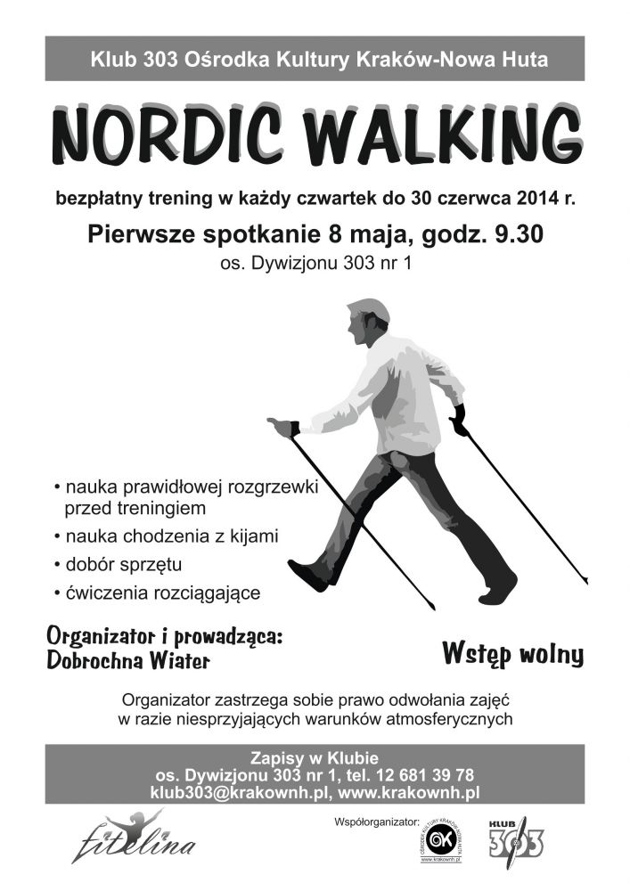 Klub 303 Orodka Kultury Kraków-Nowa Huta zaprasza na treningi Nordic Walkingu w Parku im. gen. St. Skalskiego na os. Dywizjonu 303, w każdy czwartek do końca maja.