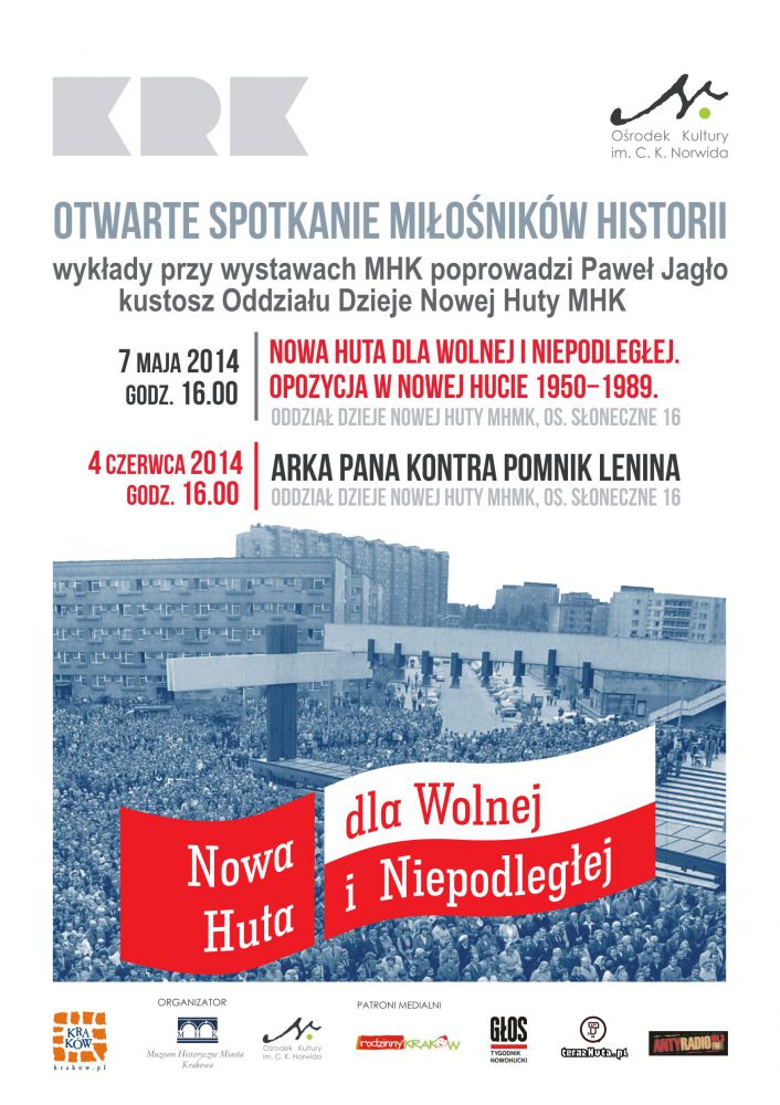 Orodek Kultury im. C. K. Norwida serdecznie zaprasza na otwarte spotkanie miłoników historii przy najnowszej wystawie w Oddziale Dzieje Nowej Huty MHMK. Wykład pt. Arka Pana kontra pomnik Lenina wygłosi kustosz muzeum Paweł Jagło.