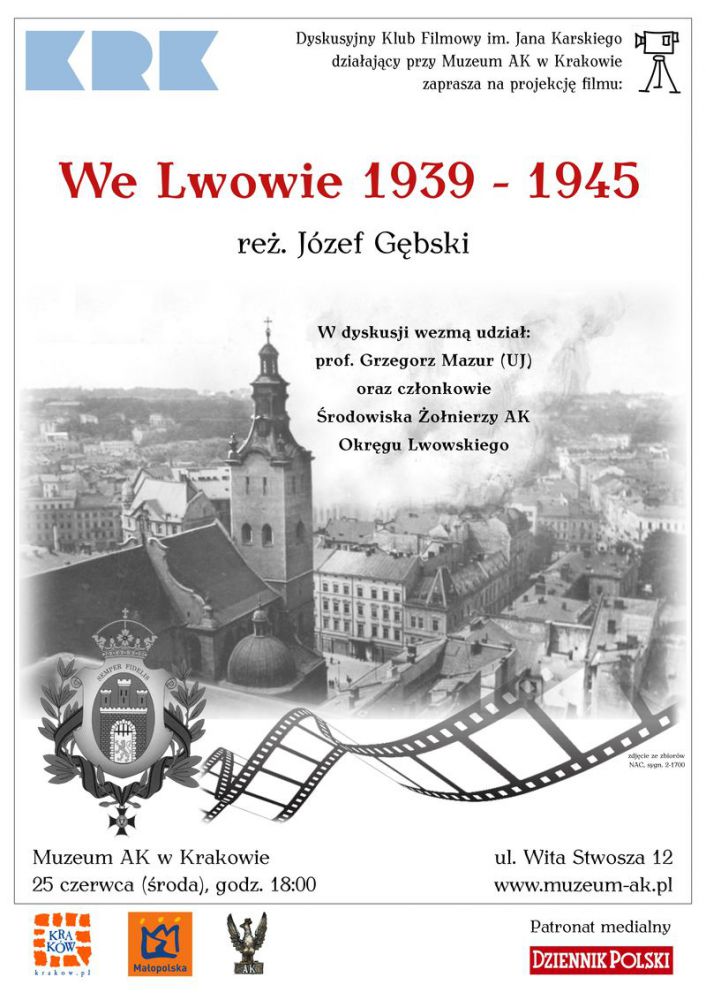 25 czerwca o godz. 18:00 Dyskusyjny Klub Filmowy im. Jana Karskiego zaprasza na pokaz filmu dokumentalnego "We Lwowie 1939-45".