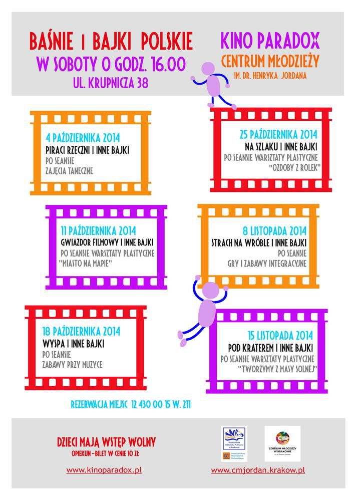 Spotkania filmowe trwajš około 60 minut (w programie zagadki, słodki poczęstunek i film), zajęcia dodatkowe po seansie 45 min.