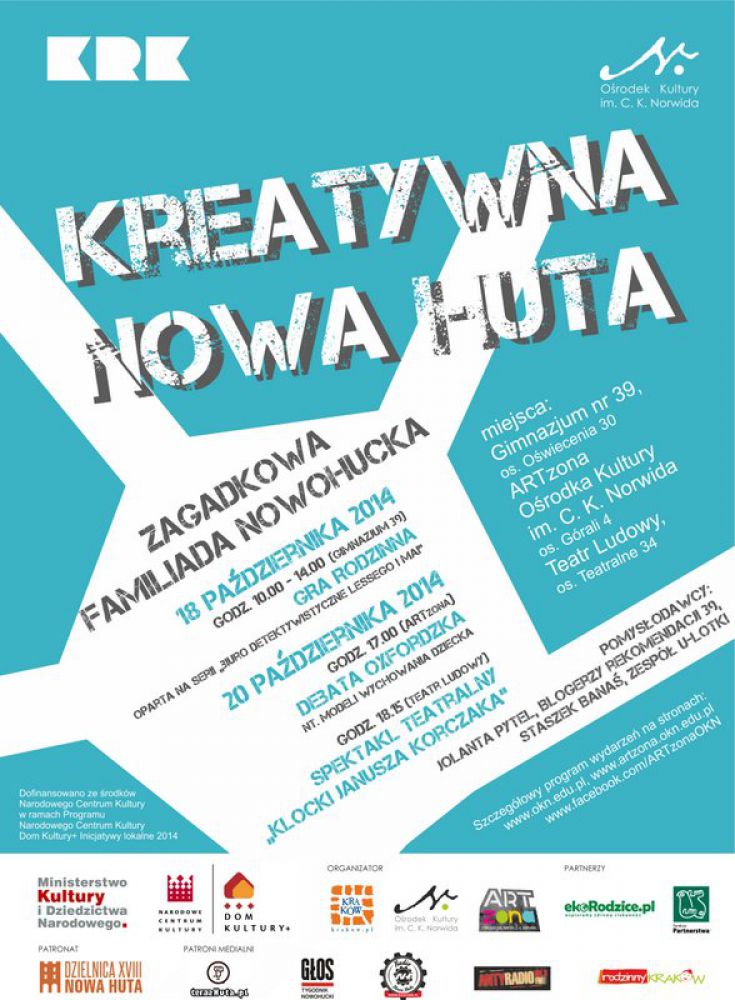 ***Projekt KREATYWNA NOWA HUTA dofinansowano ze rodków Narodowego Centrum Kultury w ramach Programu Narodowego Centrum Kultury Dom Kultury + Inicjatywy lokalne 2014