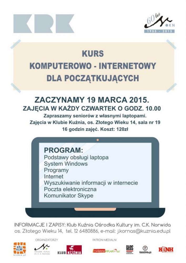 Klub Kunia Orodka Kultury im. Norwida, os. Zotego Wieku 14, tel. 12 6480886, e-mail: j.kornas@kuznia.edu.pl
