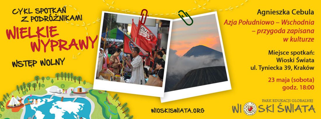 To już czas na kolejnš Wielkš Wyprawę! Zapraszamy Państwa na spotkanie z Azjš Południowo- Wschodniš, które odbędzie się 23 maja o godz. 18:00 w Wioskach Œwiata przy ul. Tynieckiej 39
