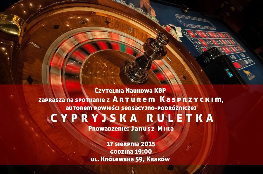Zapraszamy na spotkanie z Arturem Kasprzyckim autorem powieci sensacyjno-podrniczej "Cypryjska ruletka". Prowadzenie Janusz Mika