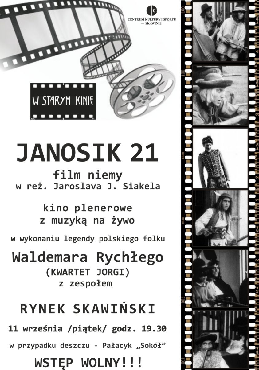 W pištek 11 wrzenia o godz. 19.30 zapraszamy serdecznie na pokaz legendarnego słowackiego filmu niemego z 1921 roku "Janosik" w reżyserii Jaroslava Jerrego Siakela, z muzykš granš na żywo przez muzyków Kwartetu Jorgi - legendę polskiego folku.