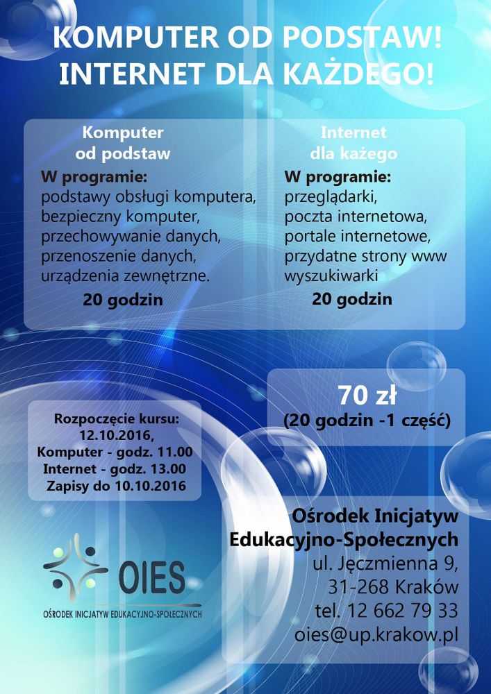 Zapisów na kurs dokonywać można mailowo lub telefonicznie oies@up.krakow.pl lub 12 662 79 33