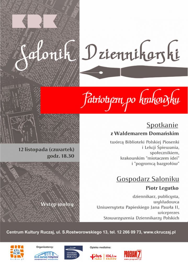 Centrum Kultury "Ruczaj" zaprasza na spotkania i dyskusje z ciekawymi osobowociami, celebrytami, politykami i znanymi ekspertami w ramach Saloniku Dziennikarskiego.