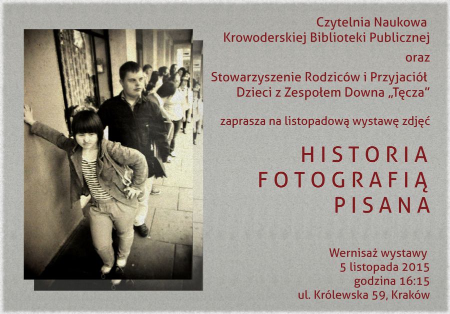 Czytelnia naukowa Biblioteki Gwnej oraz Stowarzyszenie Rodzicw i Przyjaci Dzieci z Zespoem Downa "Tcza" serdecznie zaprasza na listopadow wystaw zdj pt. "Historia fotografi pisana".