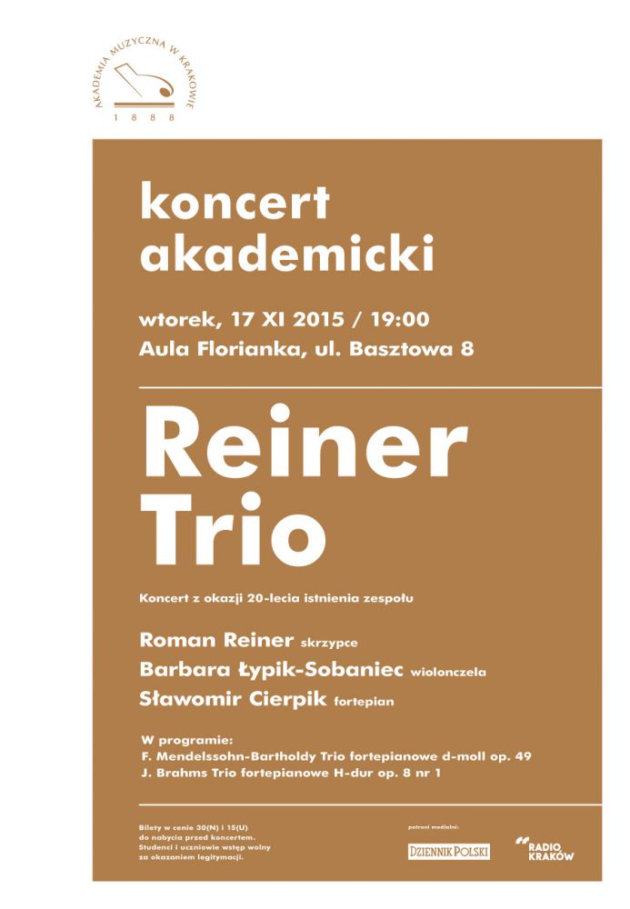 We wtorek, 17 listopada o godz. 19:00 w Auli Florianka, dzięki przypadajšcemu w tym roku jubileuszowi Zespołu kameralnego prowadzonego przez Romana Reinera, cenionego kameralistę, skrzypka i pedagoga Akademii Muzycznej w Krakowie, będziemy mieli okazję obcować z dziełami kameralnymi Feliksa Mendelssohna-Bartholdyego oraz Johannesa Brahmsa. Ich muzyka zawsze frapuje oraz, poprzez swojš pięknš melodykę i wiat harmoniczny, jest chętnie słuchana zarówno przez młodych, jak i dojrzałych i wytrawnych melomanów. Z Jubilatem zagrajš: wiolonczelistka Barbara Łypik-Sobaniec oraz pianista Sławomir Cierpik. Bilety w cenie 30(N) i 15(U) do nabycia na godzinę przed koncertem. Studenci i uczniowie wstęp wolny za okazaniem legitymacji.