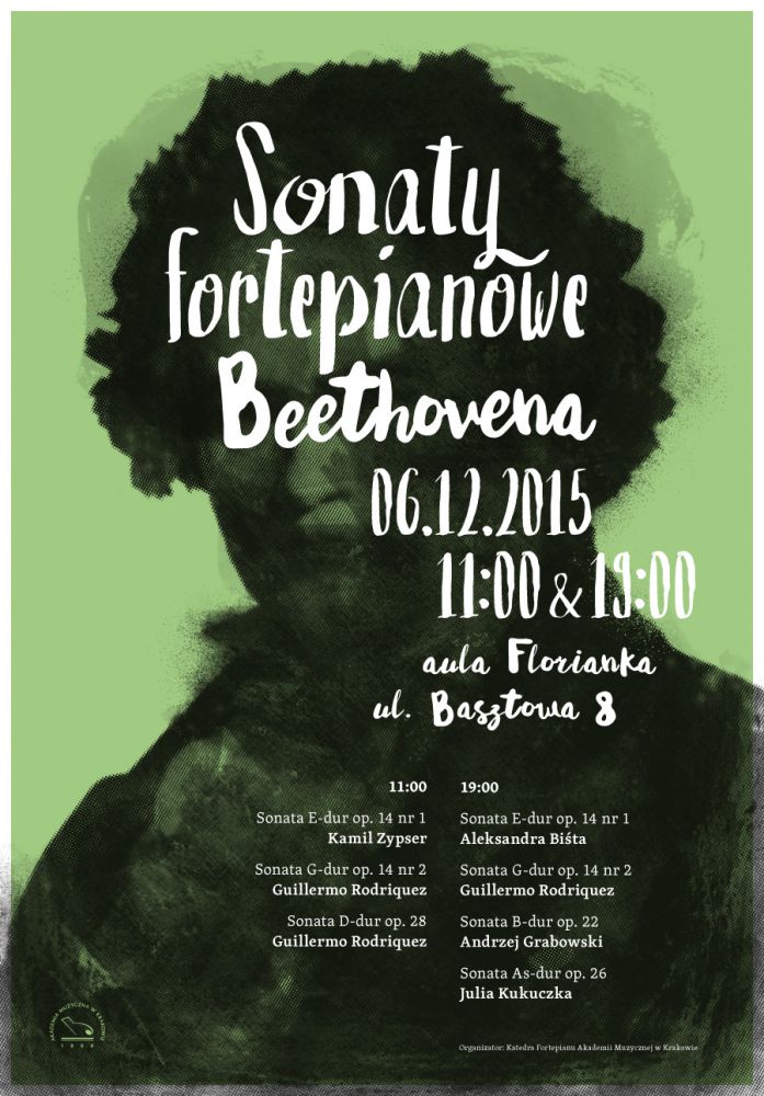 Kolejne dwa koncerty w ramach cyklu wykonań wszystkich sonat fortepianowych Ludwiga van Beethovena, przygotowane przez Katedrę Fortepianu Akademii Muzycznej, będš miały miejsce w niedzielę w Auli Florianka. Na pierwszy z nich zapraszamy przed południem na godzinę 11.00, natomiast drugi odbędzie się w ten sam dzień wieczorem o godzinie 19.00. Można powiedzieć, że pierwsza grudniowa niedziela upłynie pod znakiem muzyki wielkiego Beethovena. Muzyki Beethovena zawsze warto posłuchać. Jego twórczoć, także fortepianowa, to kamień milowy w historii muzyki. Wstęp na koncert, jak zwykle w beethovenowskim cyklu koncertów fortepianowych, jest wolny.