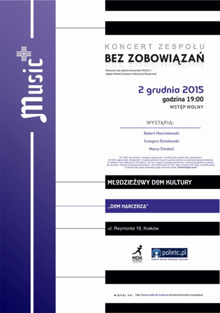 Œcieżki ich zetknęły się w 1995 roku w chatce na Niemcowej w Beskidzie Sšdeckim i jak do tej pory nierozerwalnie przeplatajš się muzycznie tworzšc nieformalnš grupę "Bez Zobowišzań" majšcš na swym koncie utwory poezji œpiewanej do tekstów własnych jak i innych, mniej i bardziej znanych poetów. Wydali płytę "Szałasolot" choć materiału uzbierało się na więcej. Majš nadzieję, że jeszcze zostanš wydane. Może nadzieję tę podziela nawet paru fanów i fanek...
